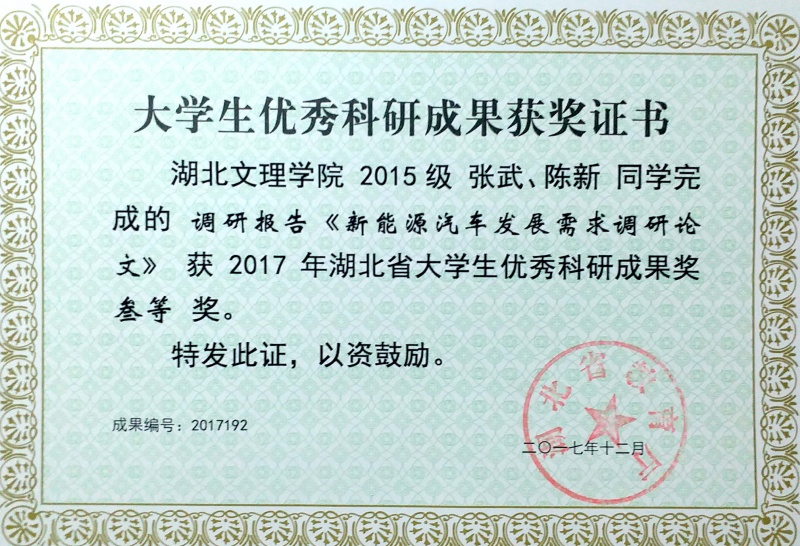 老员工优秀科研成果获奖证书