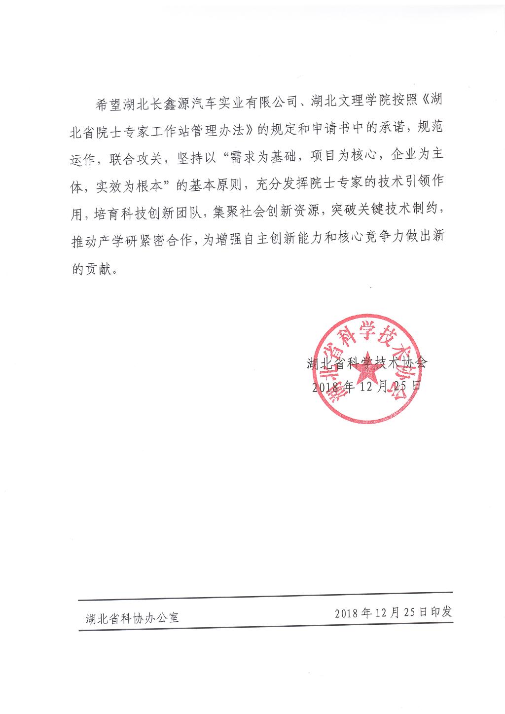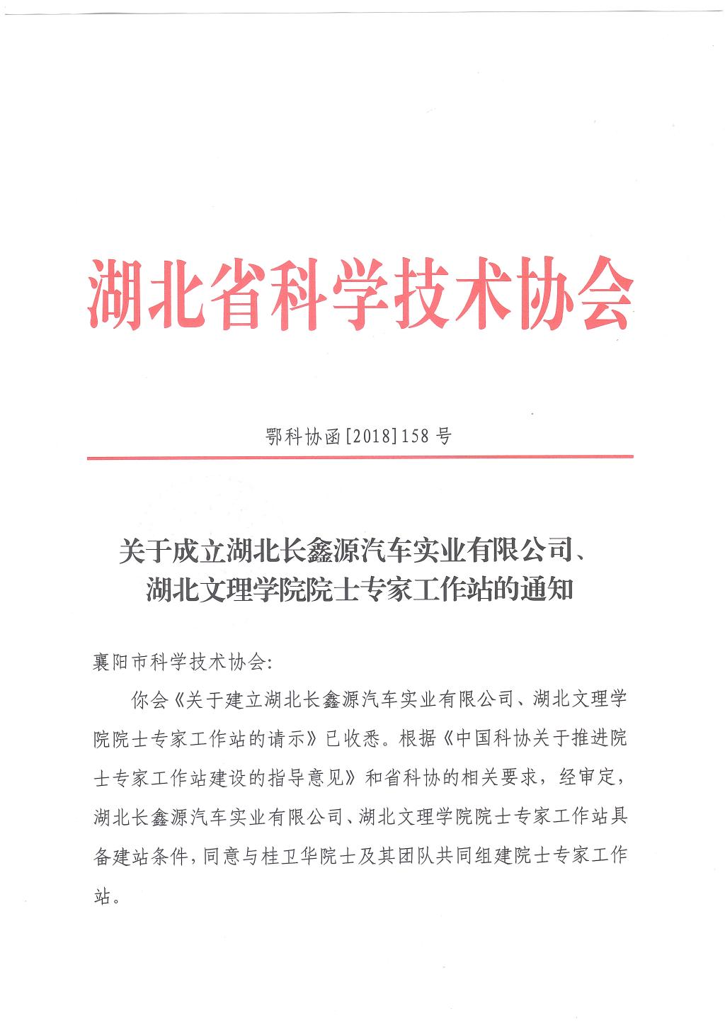关于成立湖北长鑫源汽车实业有限公司、威廉希尔官方网站院士专家工作站的通知