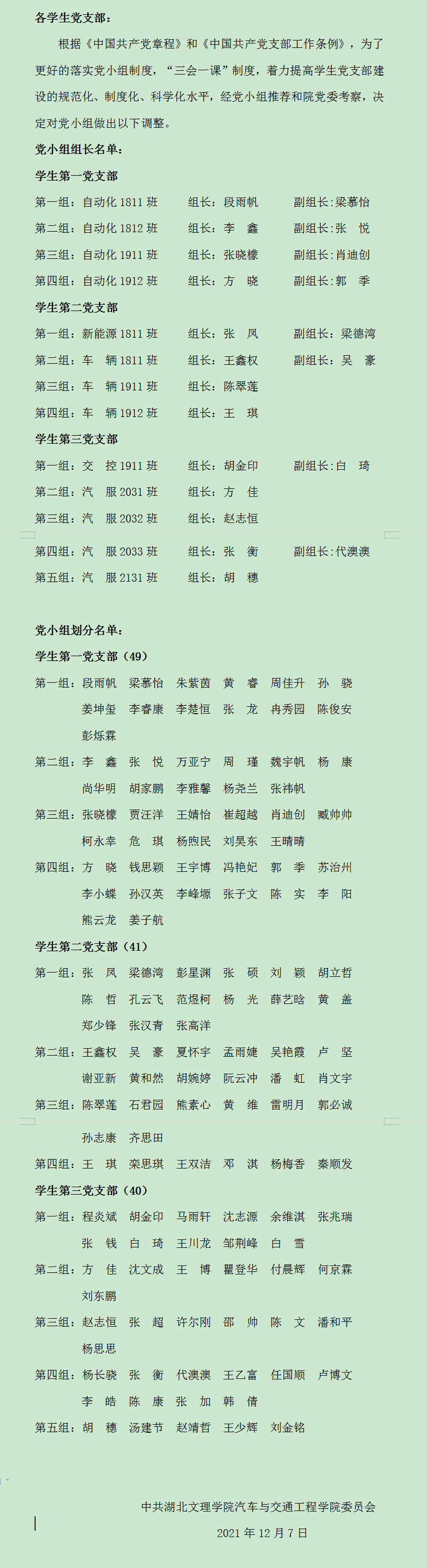 关于员工党支部党小组调整的工作通知