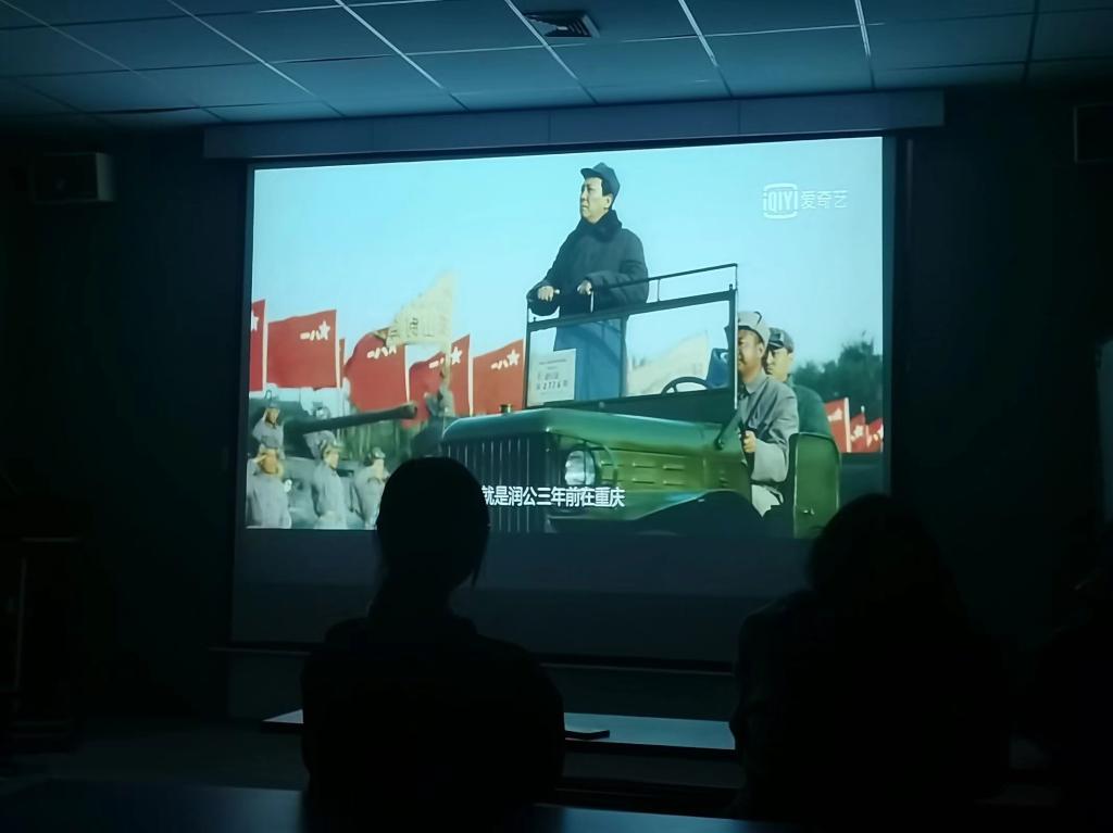 活动伊始,观影人员有序进场,首先由党总支宣传部张朋飞为到场人员介绍《建国大业》的历史背景。随后在观影者正襟危坐、满怀期待之时电影《建国大业》拉开了序幕。该片是庆祝中华人民共和国成立60周年的献礼片,讲述了从抗日战争结束到1949年中华人民共和国成立前夕发生的一系列故事。