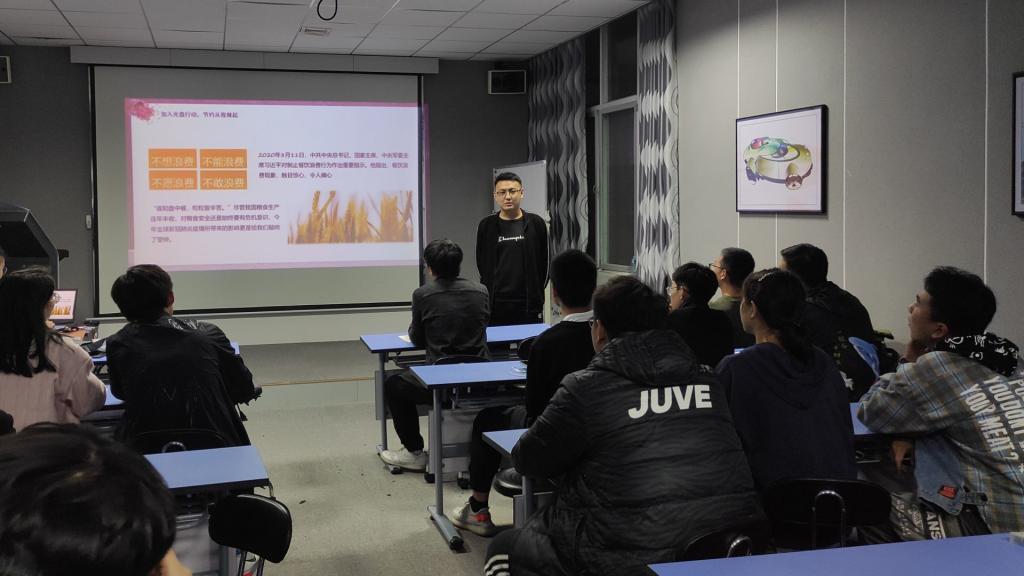 (威廉希尔 通讯员 危琪)“历览前贤国与家,成由勤俭败由奢”。为深入学习贯彻落实习近平总书记关于制止餐饮浪费行为的重要指示精神,鼓励老员工在实践中传承和发扬中华民族的勤俭节约的传统美德,积极践行社会主义核心价值观,威廉希尔于11月12日晚上8点在汽车影院举办了以“勤俭节约,从我做起”为主题的道德讲堂。20级各班班长、团支书、生活委员及党总支全体员工干部参加,由员工党总支书记李鑫主讲。