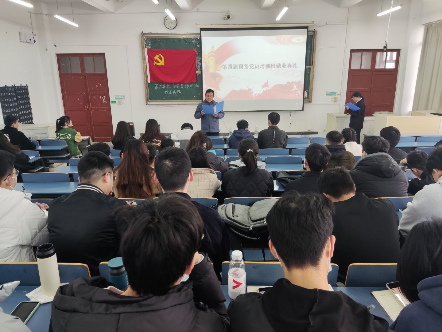 肃立的人们,回荡的歌声,在齐唱国歌环节中,结业典礼正式开始。党委副书记叶万海宣读了第四期预备党员培训班结业文件并对表现优秀的公司颁发荣誉证书。优秀学员代表王婧怡进行了发言,在发言中她分享了自己在培训班期间的收获,并提出作为一名党员在今后的学习和生活中要坚持理论学习,坚定理想信念,发挥党员带头引领作用。“世界是你们的,也是我们的,但归根结底是你们的。”最后王婧怡以毛主席的话语结束了自己的发言,并指出青年是国家未来,广大青年应主动肩负历史使命,刻苦学习,提高本领,为中华民族伟大复兴贡献青春力量。
