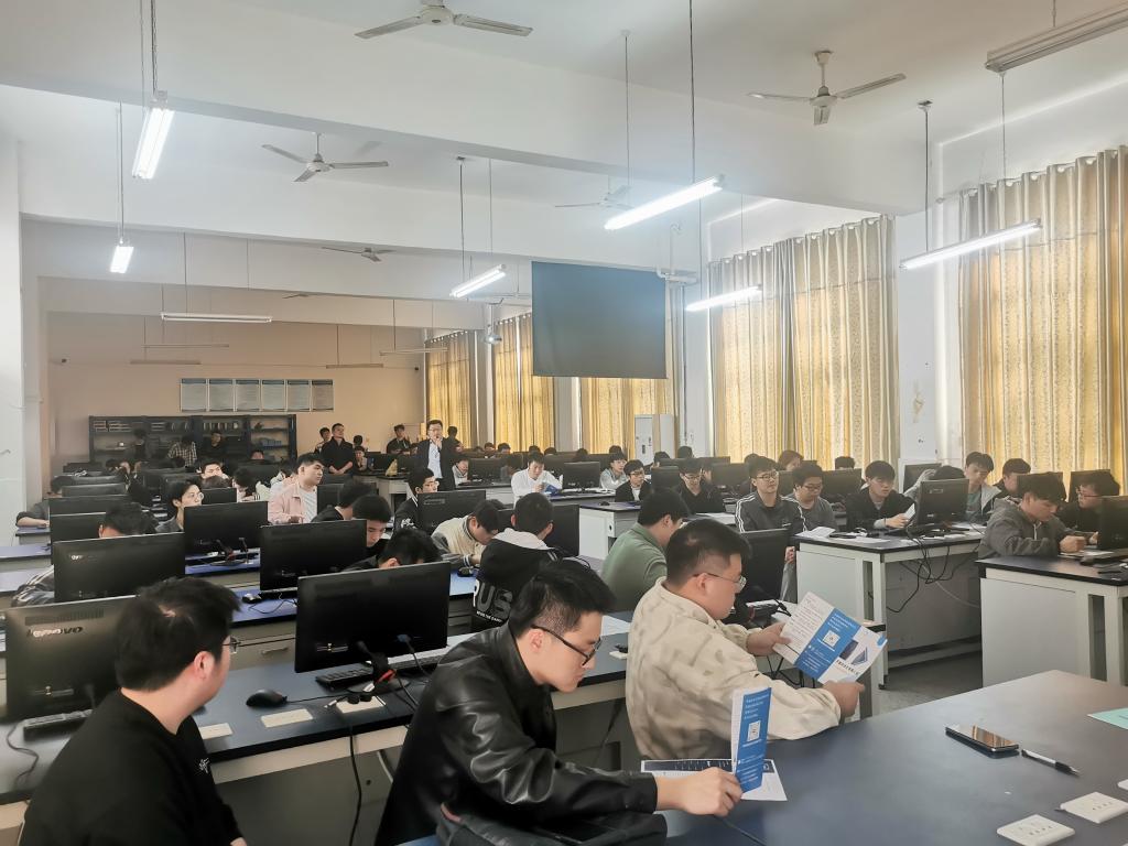在招聘会正式开始前,叶万海与该企业员工余红光亲切交谈,面对面推介毕业班同学。在宣讲时,余红光介绍了公司发展历程、经营范围、主营产品、主要客户、招聘职位、薪资福利等情况,并就个人发展、食宿条件等同学们关心的问题进行了解答。宣讲会结束后,有50余名同学现场投递简历,经过一对一面试,有9名同学达成了签约意向。