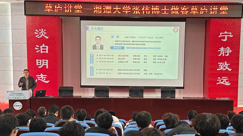 2024年11月17日上午,在宁静楼三楼报告厅,威廉希尔官方网站2015届员工、湘潭大学的硕士生导师张伟博士应邀做客草庐讲堂,为威廉希尔师生作题为《守正创新,砥砺前行》的精彩讲座,交通公司党委副书记刘向东主持讲座,近360名师生聆听讲座。