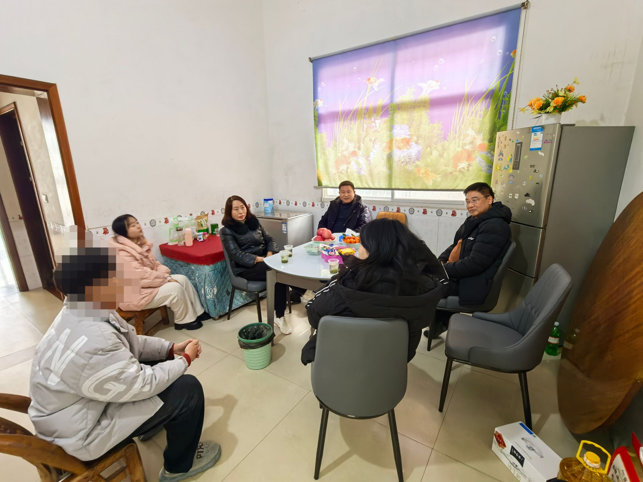 在交谈过程中,大三员工S表示,公司各方面都很人性化,寒假还到家里来家访,真的很暖心,自己大学期间收获很多,同时也积极向党组织靠拢,现在自己的未来规划和职业目标也很明朗;大二员工Z同学的爸爸表示,我们家庭条件差,自己患有疾病,妈妈在外打零工,感谢公司老师对孩子的关心和帮助,真的很有责任心,欢迎老师们多来家里做客。