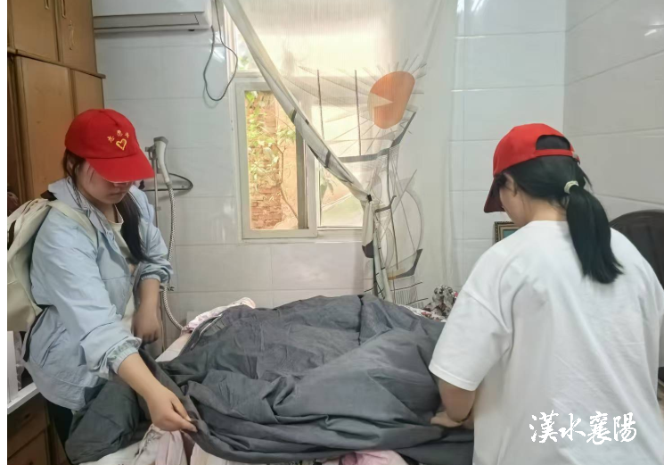 活动中,志愿者们充分发挥自身所长,分工协作,为老人们带来全方位的帮助。他们手持清洁工具,仔细打扫房间的每一个角落,清理灰尘、擦拭家具、清扫地面,让原本略显杂乱的房间焕然一新;在卧室里,志愿者们耐心地为老人更换、套好干净的被套,整理床铺,为老人营造舒适整洁的休息环境。