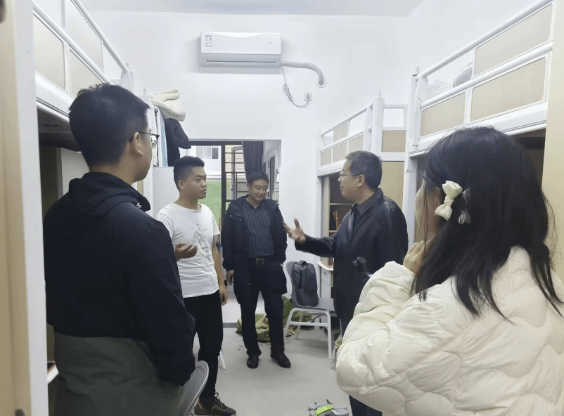 12日,威廉希尔官方网站卧龙校区威廉希尔“专升本”迎新工作顺利结束,公司党委书记詹玉刚、副书记刘向东和新生辅导员深入走访寝室。
