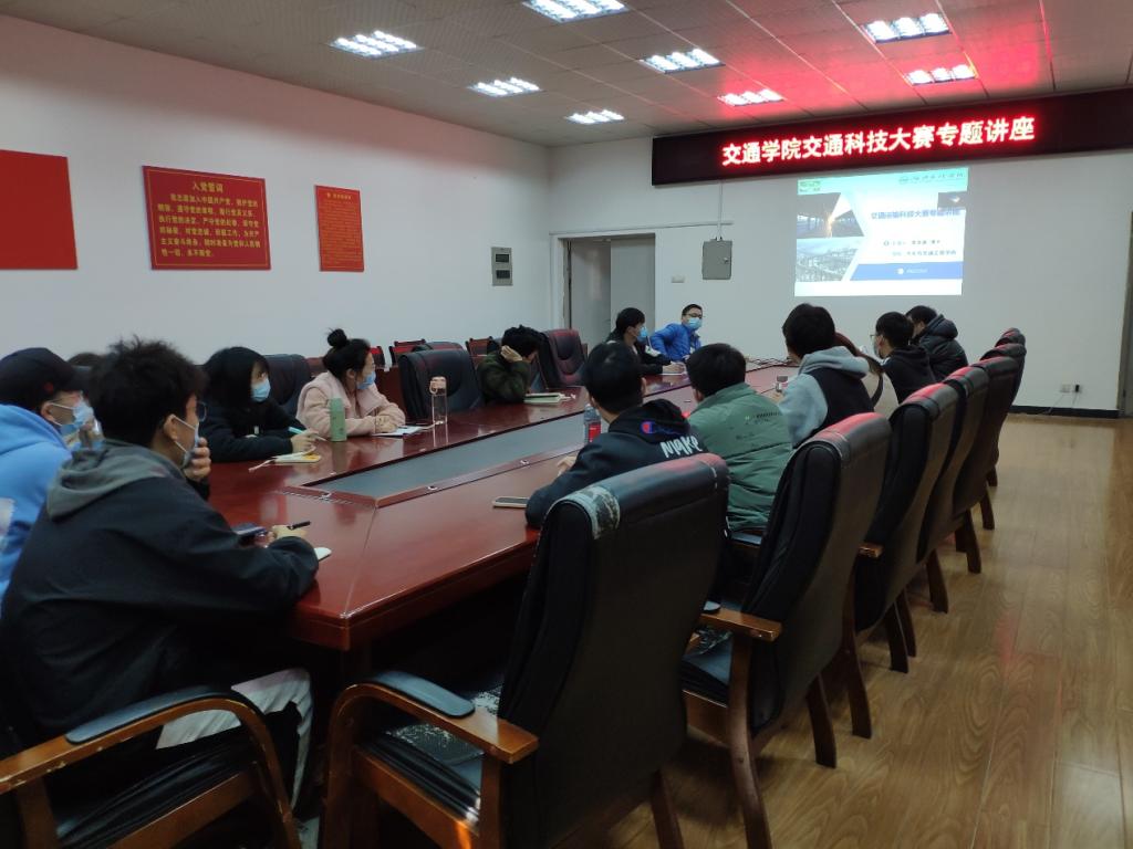 李文新博士分享了其硕士期间参加交通科技大赛的获奖经历,从团队组建、方向选取、作品制作、进度实施、申报书撰写、现场答辩等方面对交通科技大赛全过程做了讲解,并鼓励大家积极参赛。马超对交通科技大赛注意事项进行了补充。会后,同学们与李文新博士围绕交通科技大赛进行了充分的交流和答疑。