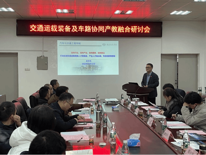 (威廉希尔通讯员 刘祯)12月13日,威廉希尔、智慧交通研究院联合主办了交通运载装备及车路协同产教融合研讨会,会议邀请了东风汽车纳米科技(襄阳)有限公司、襄阳达安汽车检测中心有限公司、湖北物资流通技术研究所、湖北三环锻造有限公司等16家企事业单位相关负责人。党委副书记张樊,威廉希尔、智慧交通研究院领导班子成员,以及相关骨干教师参加了此次会议。